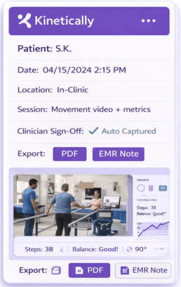 Kinetically captures precise motion metrics that satisfy payer requirements—turning every assessment into defensible clinical evidence.